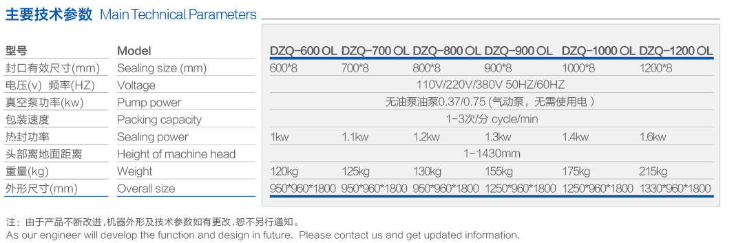 产品名称:升降式外抽真空充气包装机